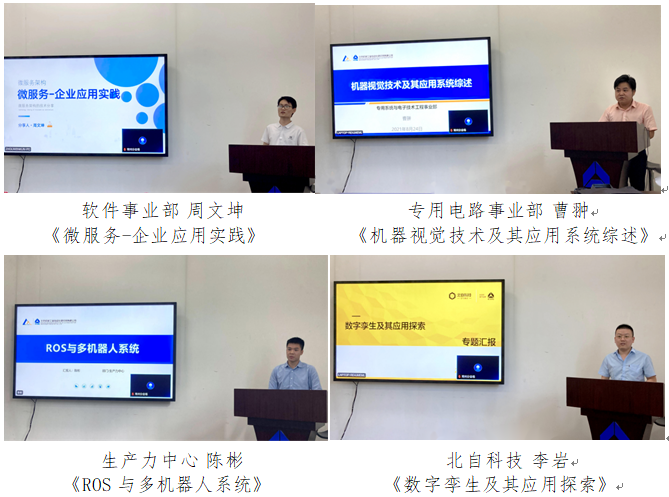 會上,來自軟件事業部的周文坤、專用電路事業部的曹翀、生產力中心的陳彬以及北自科技的李巖四名青年技術骨干,分別從基礎概念、發展趨勢、在智能制造領域的應用、關鍵技術點及常用工具幾個方面,進行了講解。通過詳細的論述,并結合豐富的實例,為參賽隊伍提供了技術支持,增加了青年在對應研究方向上的知識儲備,夯實了研發基礎。