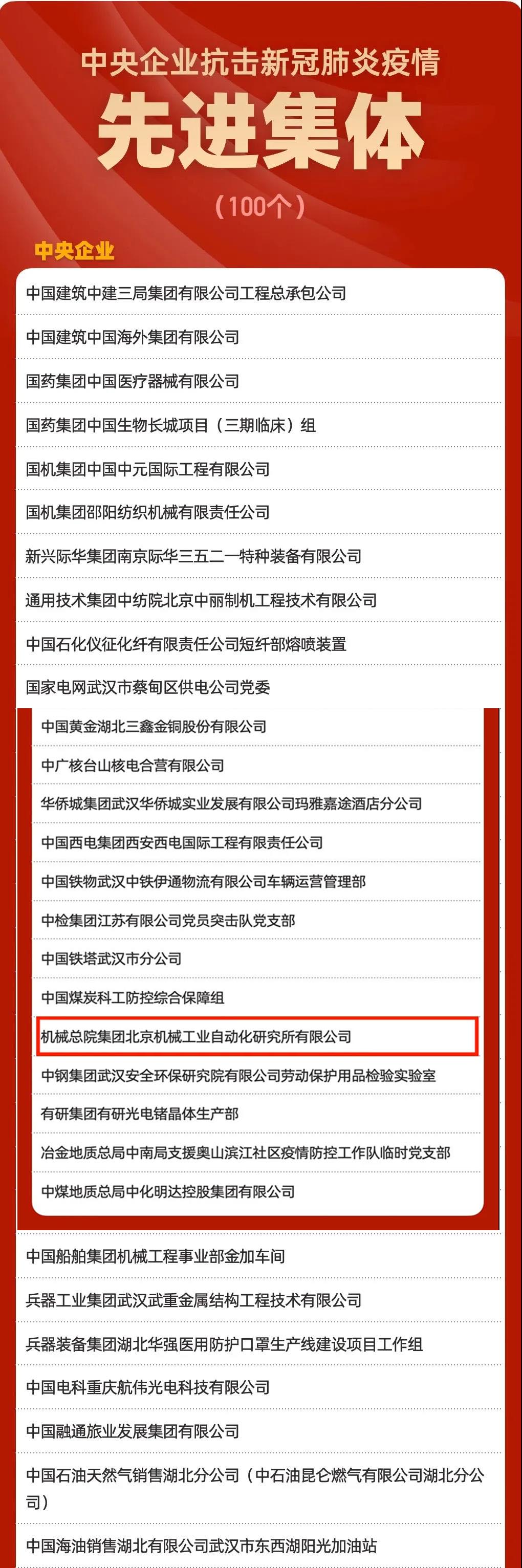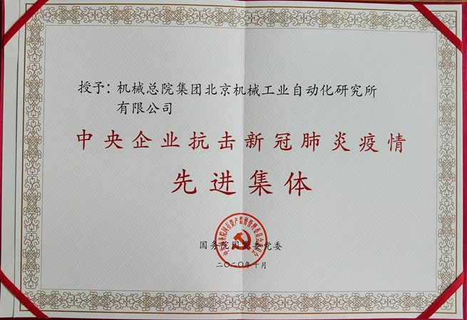 北京機(jī)械工業(yè)自動(dòng)化研究所有限公司(以下簡(jiǎn)稱北自所)因在抗擊新冠肺炎疫情中的突出表現(xiàn)榮獲“中央企業(yè)抗擊新冠肺炎疫情先進(jìn)集體”稱號(hào)。