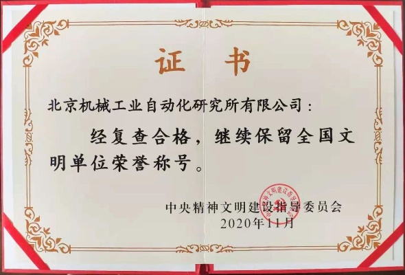 近日,北自所順利通過中央文明委復查審核,繼續保留“全國文明單位”榮譽稱號,并被首都文明委授予“2018-2020年度首都文明單位標兵”稱號,精神文明建設再添殊榮。