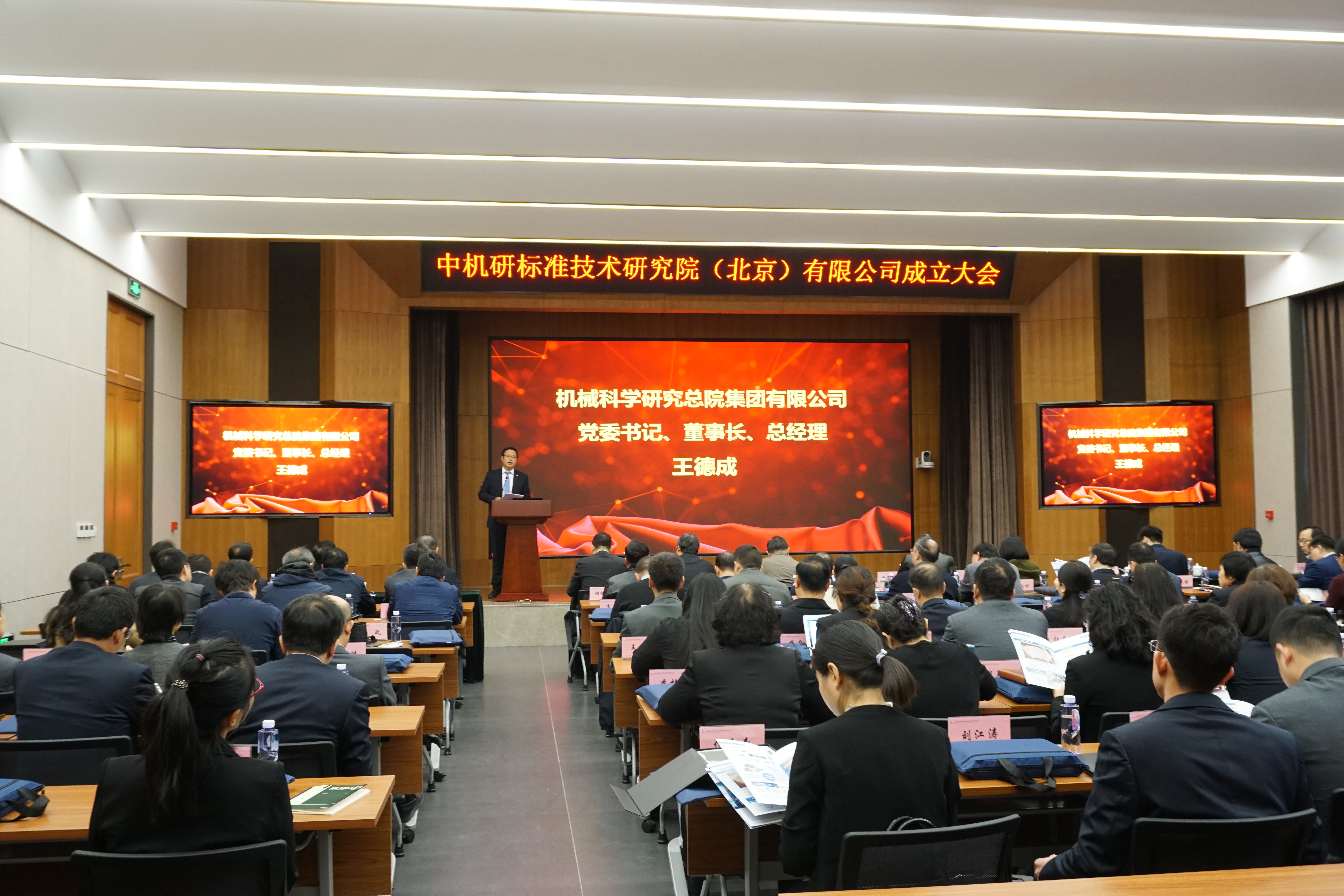 11月18日,機械總院集團在京召開中機研標準技術研究院(北京)有限公司(以下簡稱中機研標準院)成立大會,王德成黨委書記、董事長,李建友副總經理,褚毅副總經濟計師,行業發展部黃雪部長等集團領導,中國機械工業聯合會楊學桐執行副會長,中國機械工業標準化技術協會譚湘寧理事長,北京市懷柔區投資促進局楊昊天局長,中關村標準化協會黃群秘書長,集團行業委員會全體委員以及生產力中心黨政主要領導、中層干部共100余人參加了會議,會議由李建友副總經理主持。