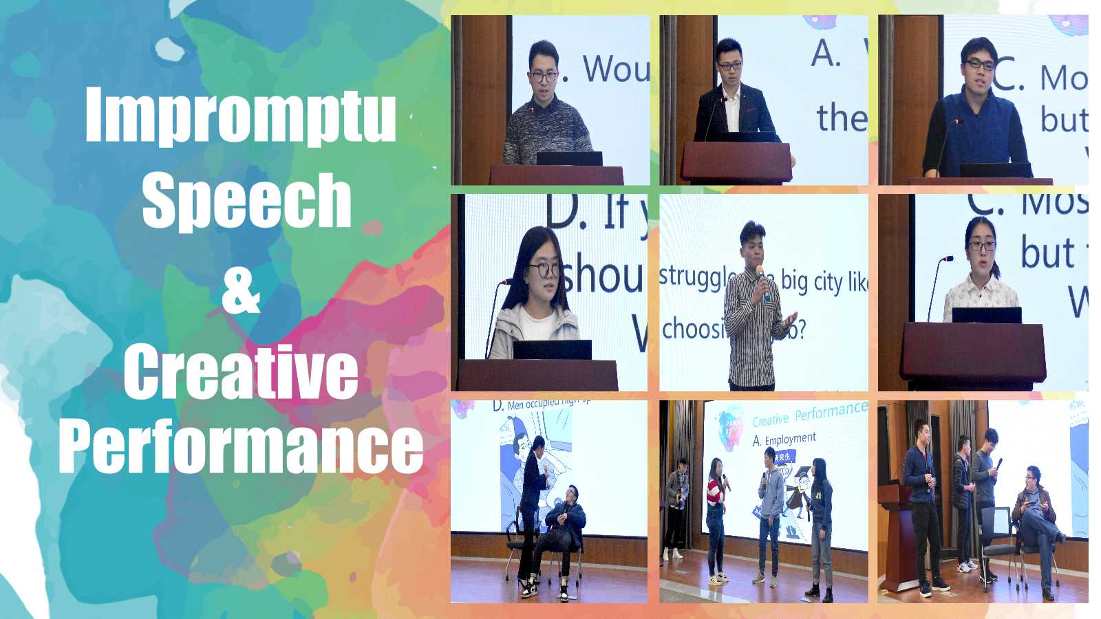 本次比賽共設(shè)“自命題演講”、“即興演講”和“創(chuàng)意表演”三個(gè)環(huán)節(jié),“自命題演講”的主題為“改革開(kāi)放40周年”。根據(jù)比賽環(huán)節(jié)的設(shè)置,每位參賽選手不僅需要熟記文稿,還需要在現(xiàn)場(chǎng)靈活發(fā)揮。大家在舞臺(tái)上充分展現(xiàn)了自己的英語(yǔ)風(fēng)采,給評(píng)委和觀眾留下了深刻的印象。