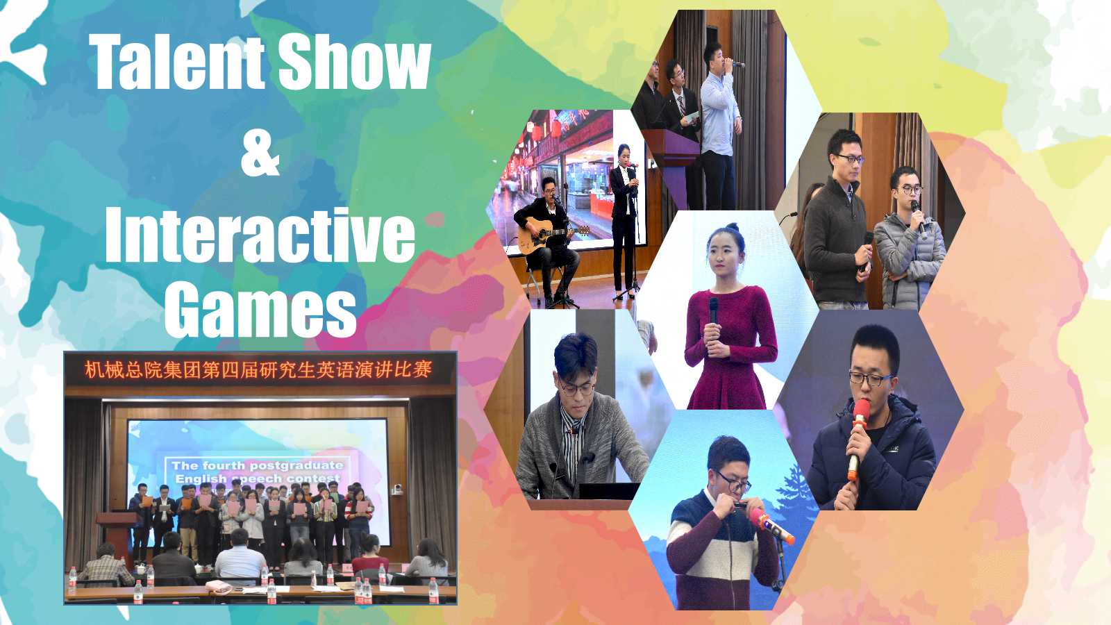 比賽間歇,來(lái)自材保所的張博聞表演了精彩的《帶你走進(jìn)西班牙足球》英文配音,來(lái)自輕量化院的閆丹丹和劉曉軍帶來(lái)了英文版吉他伴唱《成都》,來(lái)自機(jī)科股份的陳展帶來(lái)了動(dòng)聽(tīng)的口琴曲《愛(ài)爾蘭畫眉》,來(lái)自輕量化院的郭子桐演唱了英文歌曲《Nothing`s Gonna Change My Love For You》,讓大家在緊張的比賽氛圍中感受到輕松與愉悅。此外,“電影配音”、“英語(yǔ)繞口令”、“Describe and guess”等一系列小游戲活躍了現(xiàn)場(chǎng)氣氛。