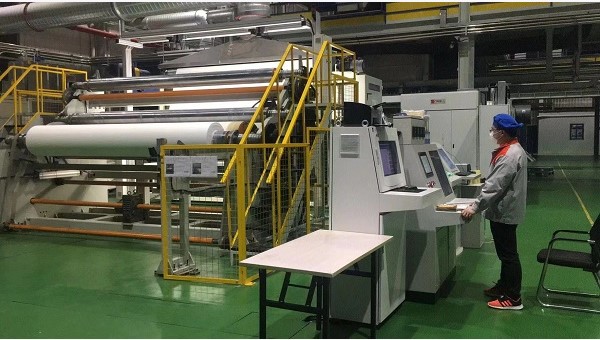 常州科技智能制造工廠建有兩條高端無紡布生產線,實現了全流程自動化、制造過程的信息化管控、智能倉儲和物流,可滿足智能化柔性制造。疫情當前,為滿足廣大人民群眾防疫需求,全力保障民用防護用品市場供應,常州科技加強工藝研究和技術創新,強化質量管控,調整工藝參數和產品結構,將全部產能用于生產民用防護用熔噴過濾層無紡布。該產品具有透氣、防水、無毒、無味、無菌、環保等優點,是制造口罩的主要原料,廣泛應用于衛生、保健等多個行業。目前,常州科技已進入“戰時”狀態,加班加點開展生產,每天可生產口罩必用紡粘材料十噸,可供制作口罩一千萬個。
